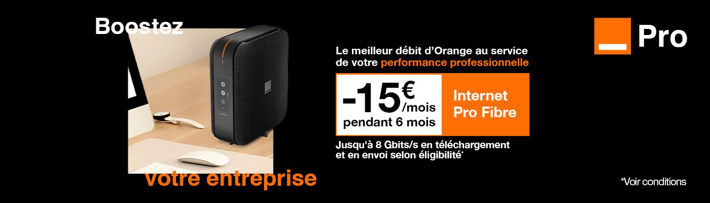 Bénéficiez de 15 € de réduction par mois sur les offres fibre Orange Pro, pour booster la performance de votre entreprise.